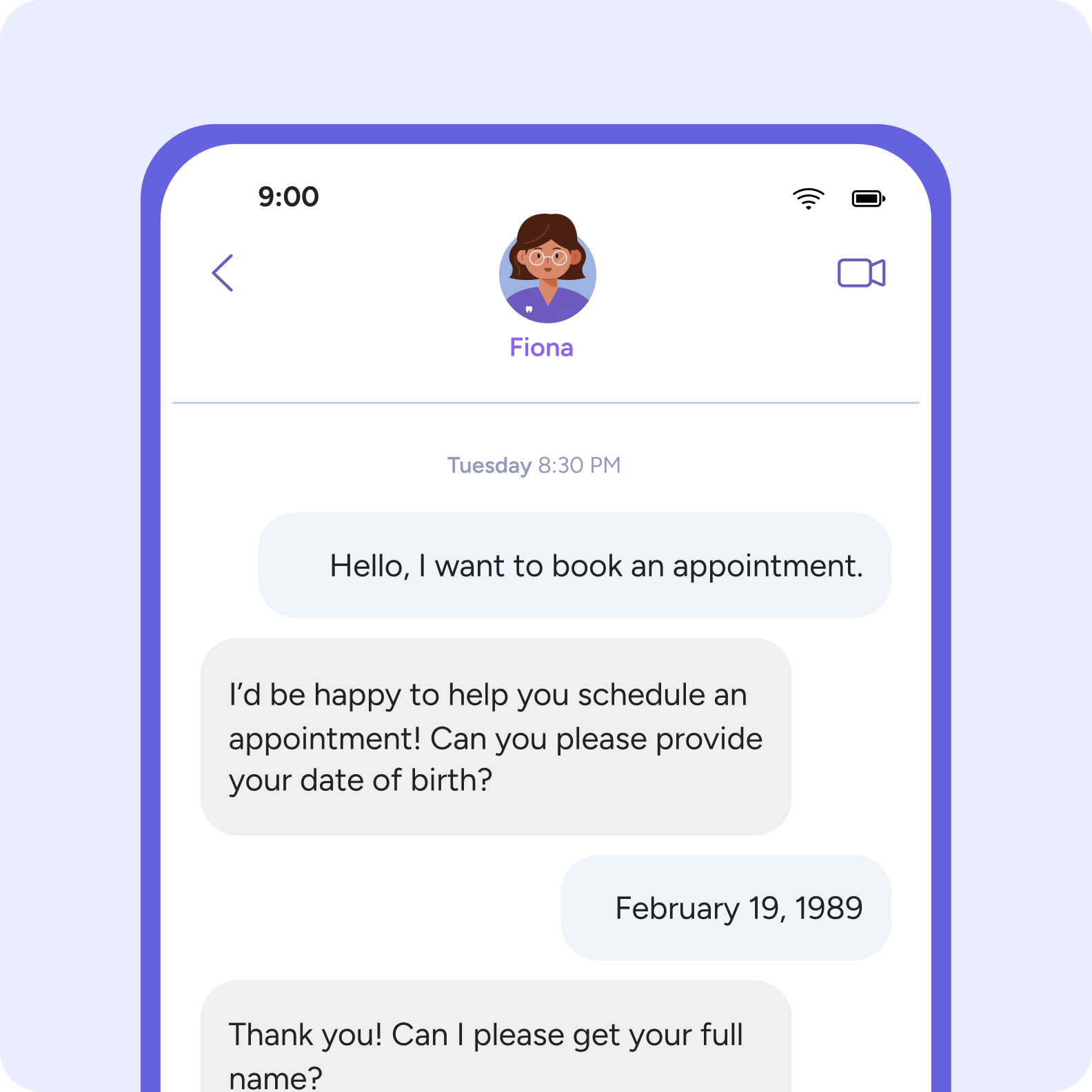 Fiona takes the load off your front desk by handling patient conversations across every channel —