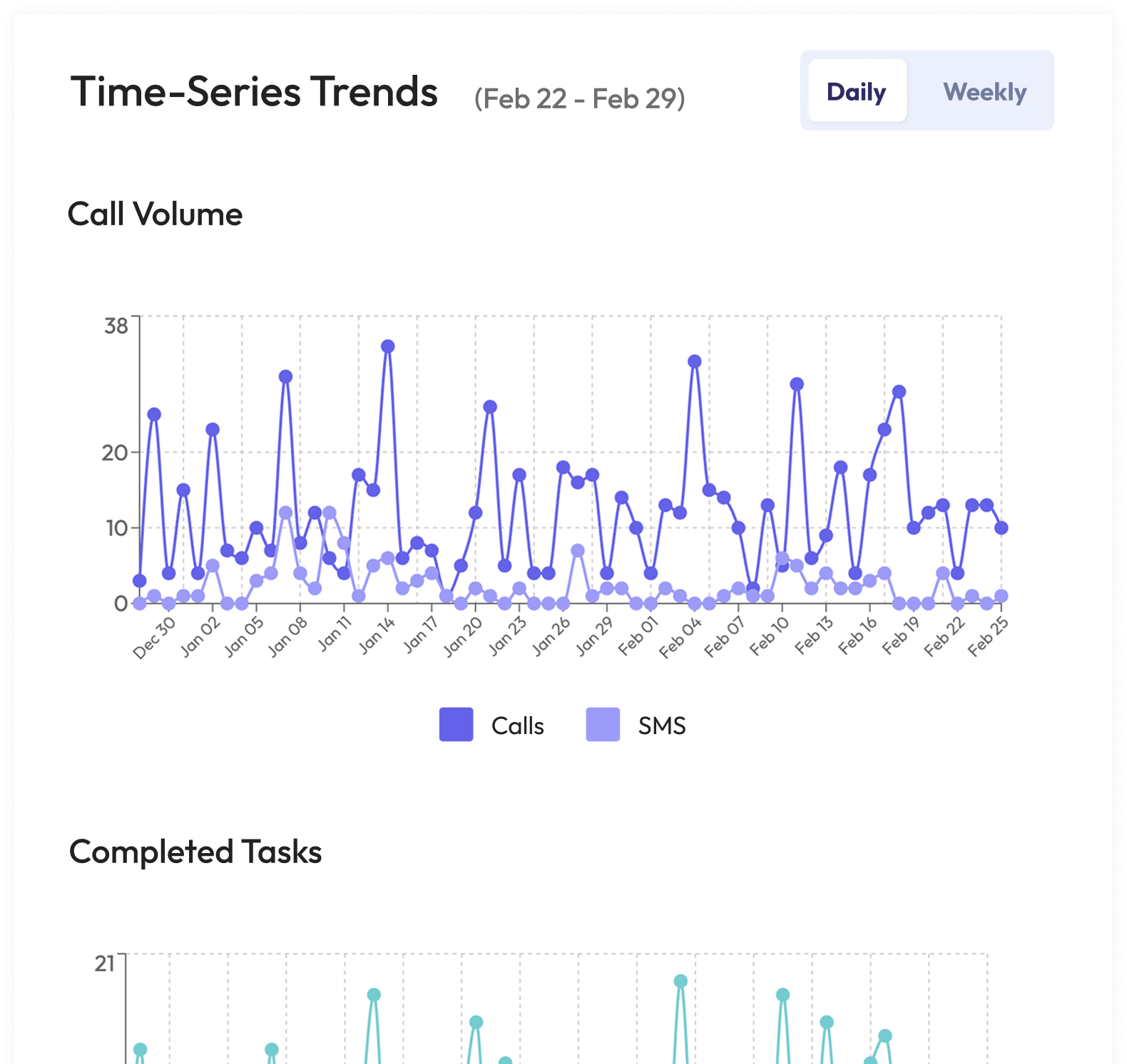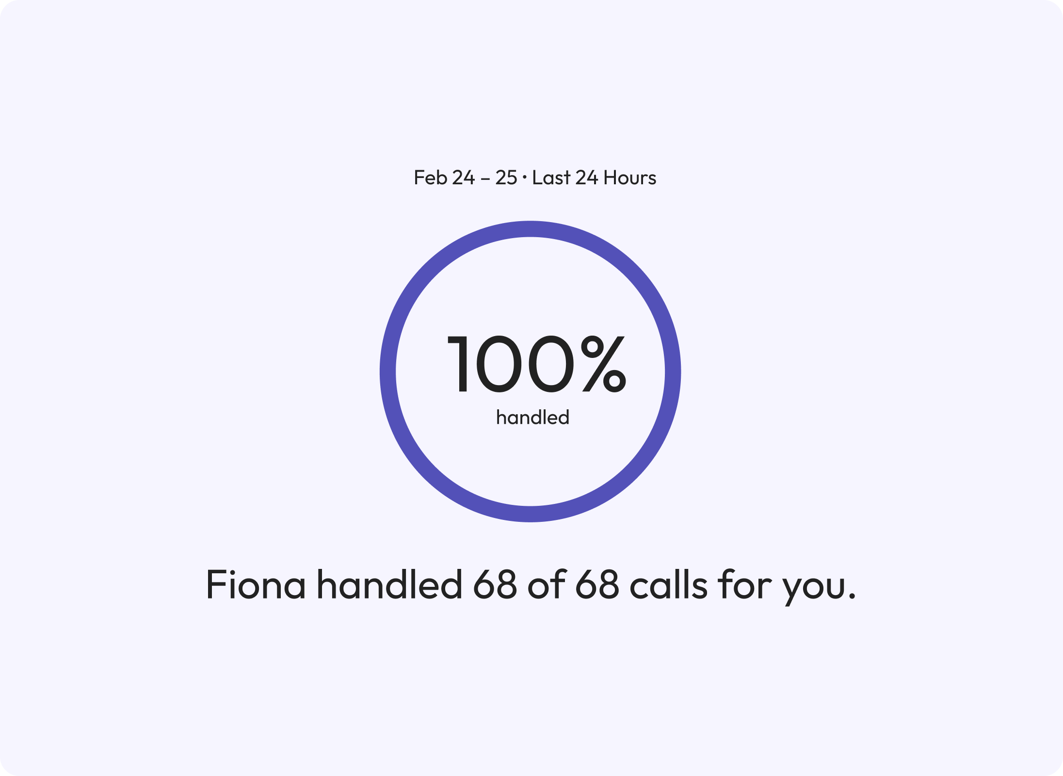 Every call Fiona handles becomes a data point. See metrics on how many hours Fiona has worked and tasks she's completed, so you always know how your front office is performing even when you're not in the building.